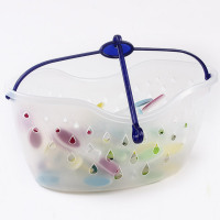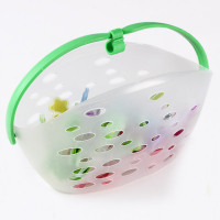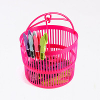 Plastic basket with clothes pegs